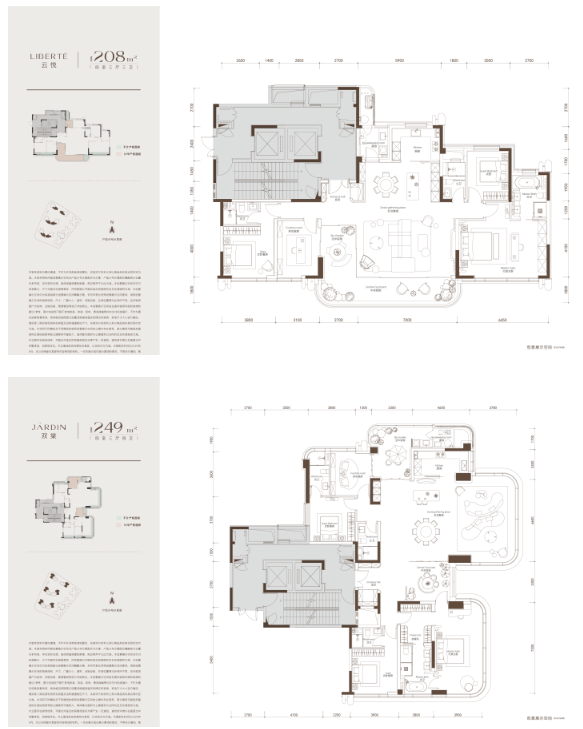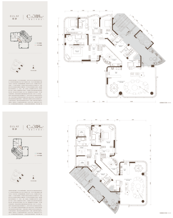 04 主力产品解析 精粹208-318㎡战略级平层,以超越常规的奢阔尺度与全球化视野,承载塔尖阶层的家族生活、社交宴请与资产配置