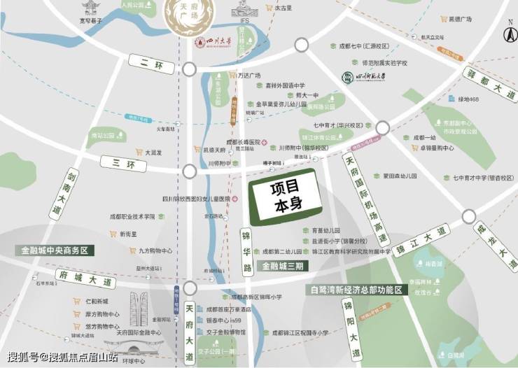 ⭐锦江三环上承东湖-攀成钢,下启金融城-三圣乡,传统富人区与新贵圈交界,寸土奢贵⭐锦江三环上的金融城东,横跨锦江与高新金融城三期、锦江软件园、白鹭湾新经济总部功能区等高热版图汇聚⭐全球总部高地+高精尖产业+绝版生态资源⭐高能级土地之上,集锦城市塔尖配套