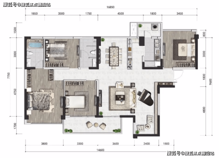 而从户型上可以看到,大方厅+客餐厨一体化+全景大面宽的设计为项目增色不少,对于空间要求愈发高的改善人群来说,动线清晰、生活场景完善实属加分项,结合室外庭院的融会贯通,实则演绎出明晰的品质样板。