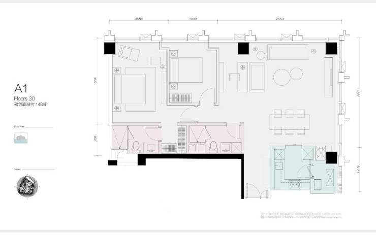 建筑面积:168-310-630㎡(168㎡臻稀余席)