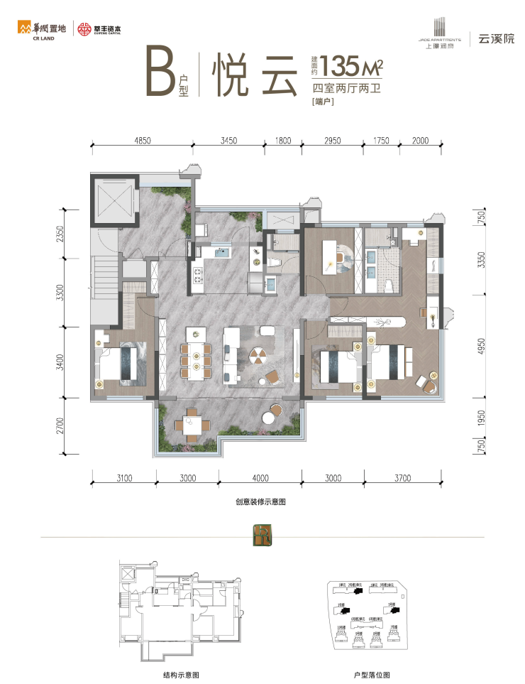 建面约135/139㎡ 新规可变五房|实际使用空间约155/165㎡