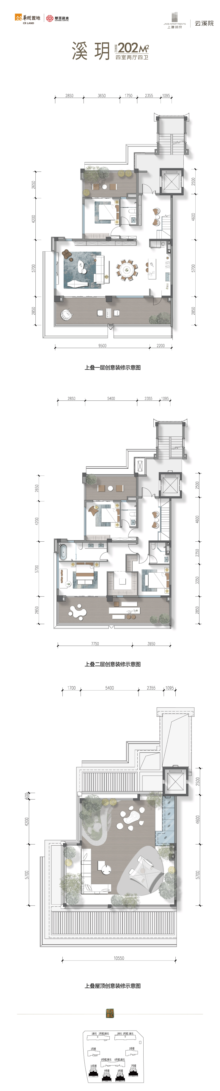 •下叠享全采光地下室与临溪庭院,中叠拥南北双露台及多个花园,上叠设星空屋顶;