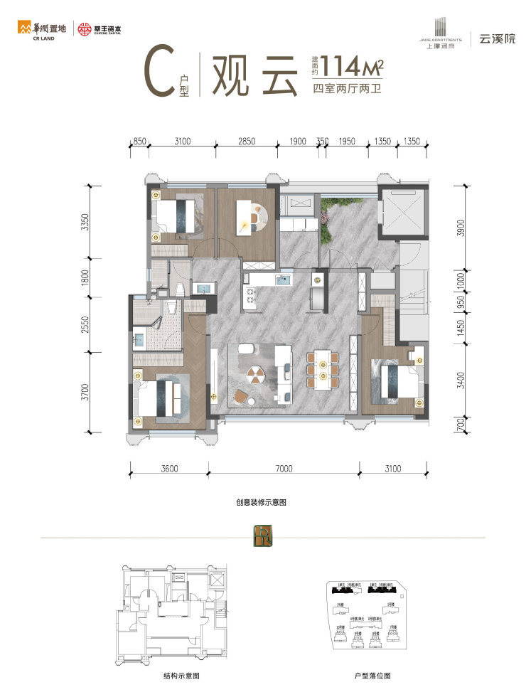 建面约114㎡ 新规四房|实际使用空间约128㎡