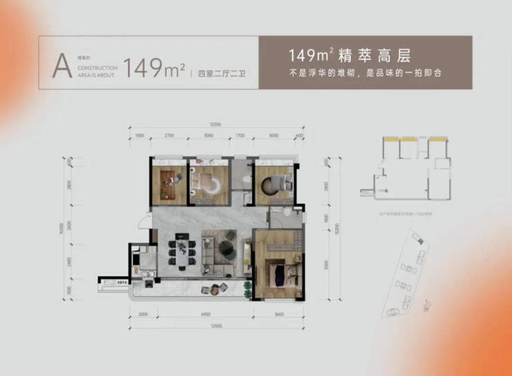 在售户型:149㎡、176㎡;1栋21层2T2户:149㎡;2栋7层2T2户:176㎡