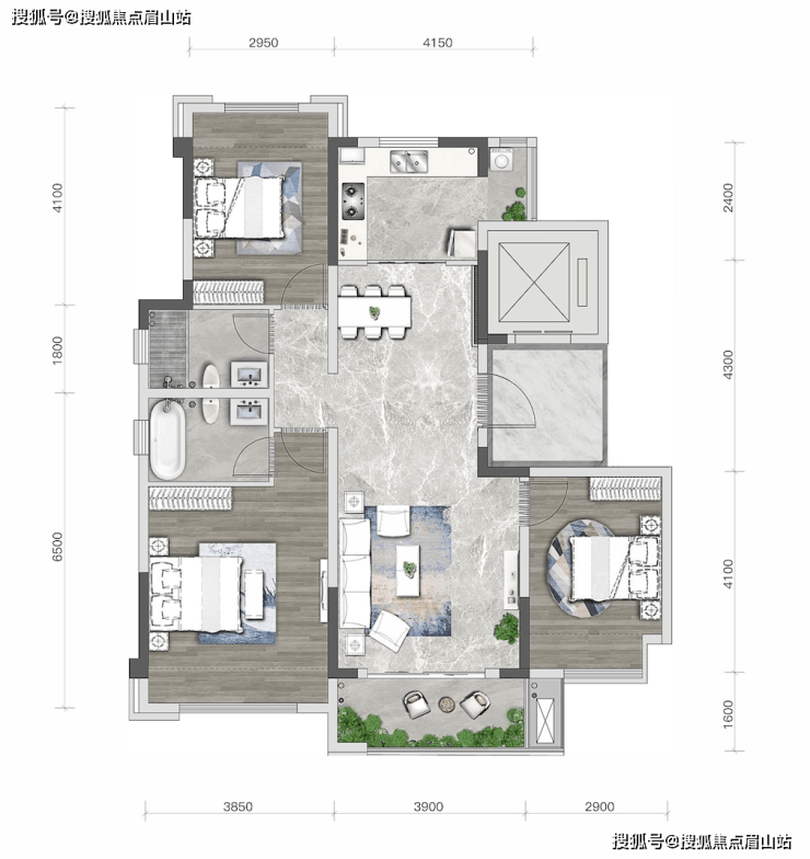 就拿洋房户型来说,公摊大概在12%左右,实得接近95%!要知道,现在洋房的普遍公摊在15%-20%左右,如此高的得房率,在成都实属难得!