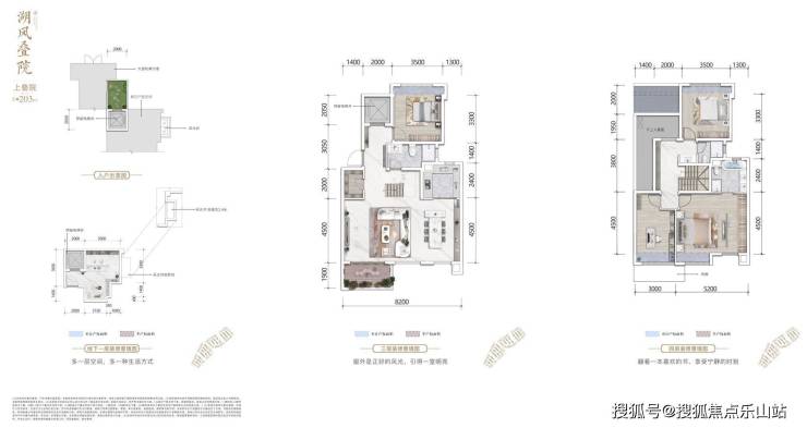 其中下叠拥有前后花园和地下室,上层平墅拥有屋顶露台和地下室,并均可实现由地下室、花园、地面大堂独立入户,与独栋别墅的入户方式基本类似。