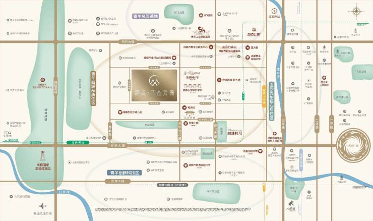 【交通】三横三纵五轨道三横:日月大道/光华大道/光华八线三纵:西3环/西3.5环/4环绕城高速五轨道:4号线/9号线/8号线(规划中)/13号线(规划中)/29号线(规划中)地铁4号线(项目距蔡桥站直线距离约800米)