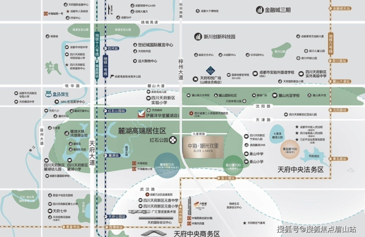 璀璨商业:麓湖水镇、伊藤天府旗舰店(在建中)、天府和悦广场、山姆会员店、麓山麓镇;