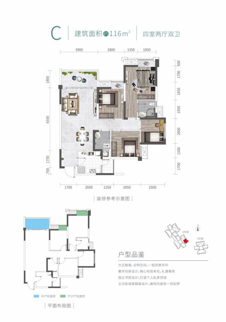 建筑面积约116㎡ 四室两厅两卫
