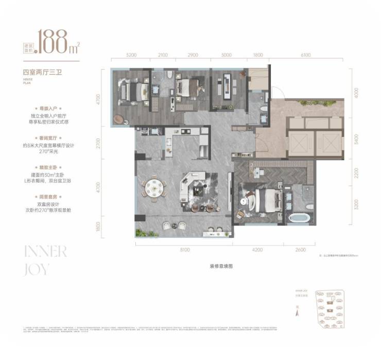 产品面积:120㎡、133㎡、143㎡、188㎡
