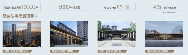【新希望地产】精致绿色,让生活更美好世界500强品质,城东品质舒居缔造者新希望集团,2021年荣登世界500强榜单,2024年排名378位。新希望地产为百强房企TOP30,聚焦城市“中高端”住宅产品开发,以天系、锦系享誉全国。于成都龙泉,皇冠湖壹号、锦粼府、锦粼云境、长粼府,以高阶产品力赢得市场的高度认可。