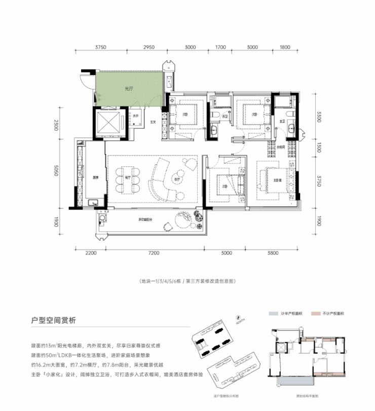 做别人没有的户型:区域最低门槛的板式套三洋房,片区没有,只有天屹有。区域唯一带梯控的光厅入户花园,天屹真改善。