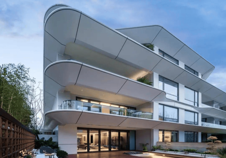 4. 游艇级建筑立面:40%超高窗墙比搭配弧形铝板,以超行业标准的选材呈现标志性建筑美学。