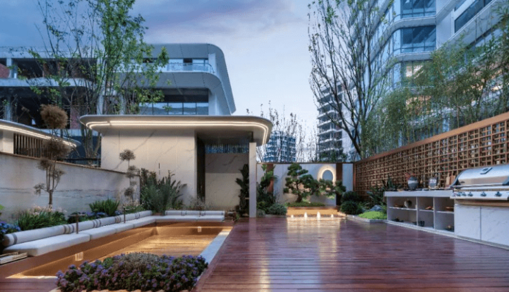 3. 双首层采光设计:20㎡下沉庭院结合坡地花园,实现-1F双面全明,打造真正意义上的立体庭院生活。