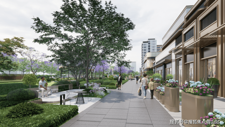 奢尚情景街区 潮见生活璀璨自带约1.8万㎡都市漫时光街区商业,多业态、高规格,艺术景观铺展多维互动,潮见峯层生活每一面精彩。