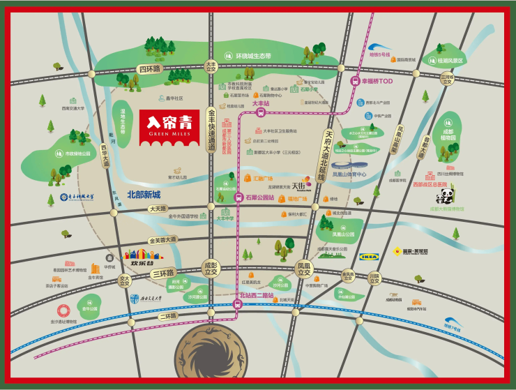 地面交通:周边形成“四横四纵”的立体路网(四横:三环路、金芙蓉大道等;四纵:西华大道、天府大道北延线等),无论是自驾去城南还是出城,都非常便捷。
