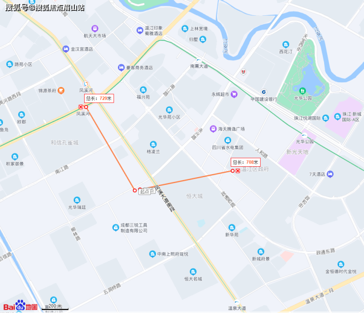 往光华大道那边走,有个光华公园,直线距离大约1.2公里。