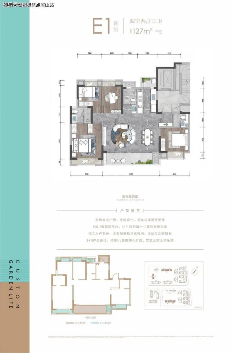 建面约127㎡的套四。