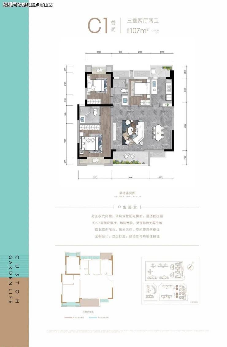 建面约107㎡的套三。注意:这个户型本次开盘还未推出。