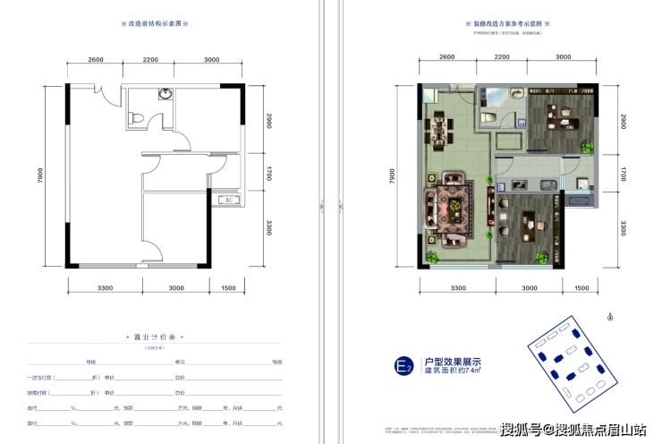 SOHO:E2户型建筑面积约74㎡