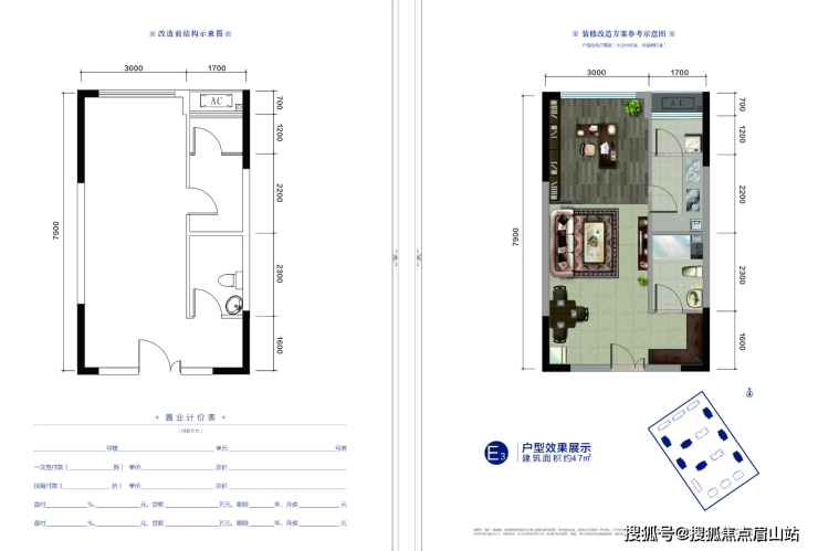 SOHO:E3户型建筑面积约47㎡