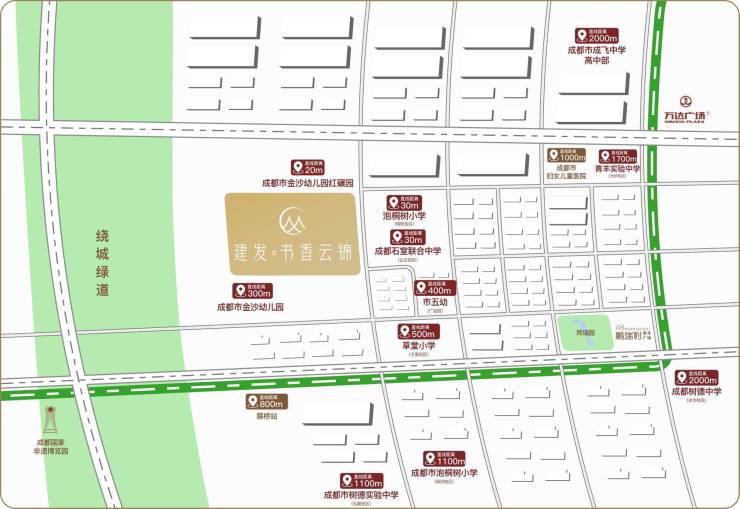 【交通】三横三纵五轨道三横:日月大道/光华大道/光华八线三纵:西3环/西3.5环/4环绕城高速五轨道:4号线/9号线/8号线(规划中)/13号线(规划中)/29号线(规划中)地铁4号线(项目距蔡桥站直线距离约800米)