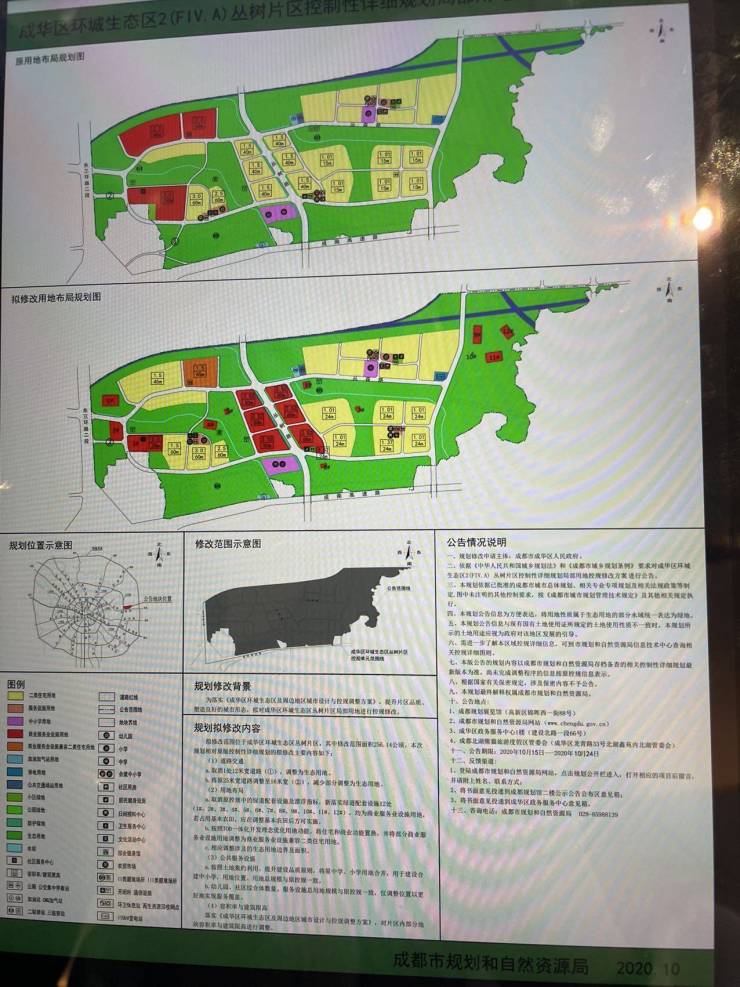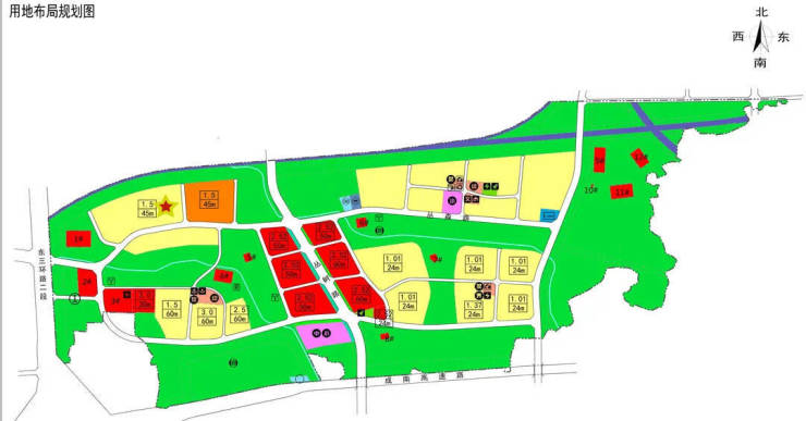 区域控规图:(黄色为住宅用地,绿色为公园用地,红色为商业用地)
