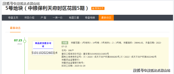 天府新区成都中粮保利天府时区花园1号地块3、14号楼、5号地块1、2、3号楼,已于2022年7月15日取得预售许可证(预售许可证号:蓉预售字第510110202260314号)。本批次供应186套70年产权住宅,建面176-381平米,非清水交付单价¥23136-32293元/㎡,非清水交付总价¥445.36-1016.53万,装修标准¥2995元/㎡,非清水均价约22800元/㎡;1号地块3、14号楼为高层产品其中位于一楼的8套跃层非清水交付单价¥23136-24516元/㎡(1楼户型均为跃层,也就是“挖地下室拉低均价”)。5号地块1、2、3号楼为叠拼(叠拼产品分上中下叠,并不属于纯粹的叠拼产品)。