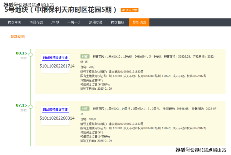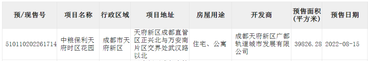 天府新区成都中粮保利天府时区花园1号地块10、13号楼、5号地块4、5、8号楼已于2022年8月15日取得预售许可证(预售许可证: 蓉预售字第 510110202261714 号)。本批次供应206套70年产权住宅,建面137-367平米,非清水交付单价¥21758-31031元/㎡,非清水交付总价¥353.9-976.37万,装修标准¥2975元/㎡,非清水均价约22800元/㎡;1号地块10、13号楼为高层产品其中位于一楼的7套跃层非清水交付单价¥21758-23142元/㎡(1楼户型均为跃层,也就是“挖地下室拉低均价”)。5号地块4、5、8号楼为叠拼(叠拼产品分上中下叠,并不属于纯粹的叠拼产品)。
