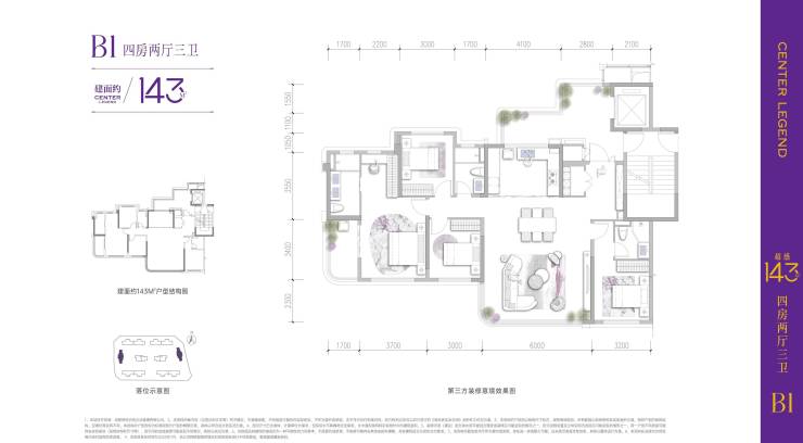 建面约143㎡ | 高奢四房•光厅双厅三卫