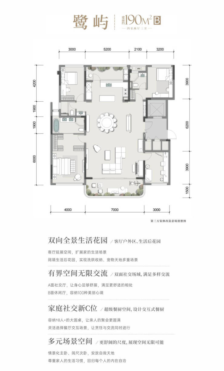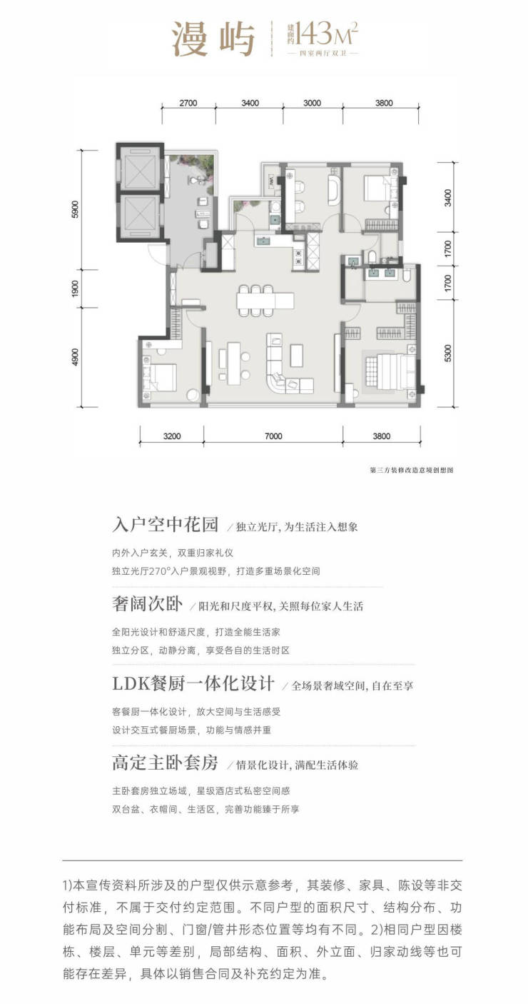 臻选户型:143㎡漫屿(四房两厅双卫)/190㎡天屿&鹭屿(四房两厅三卫)