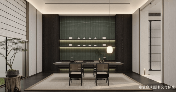 架空层泛会所设置书法区、茶艺区等多功能空间,打造邻里社交第三空间,促进社区文化共生。