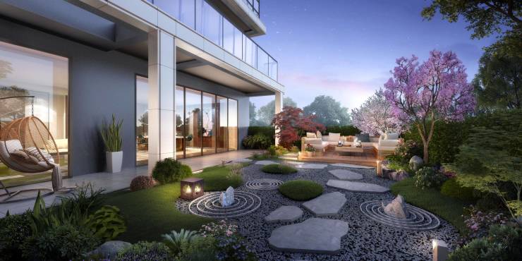 2.约38%绿化率,湿地公园-中庭园林-景观组团入户,三重公园景观,公园深度森居体验;