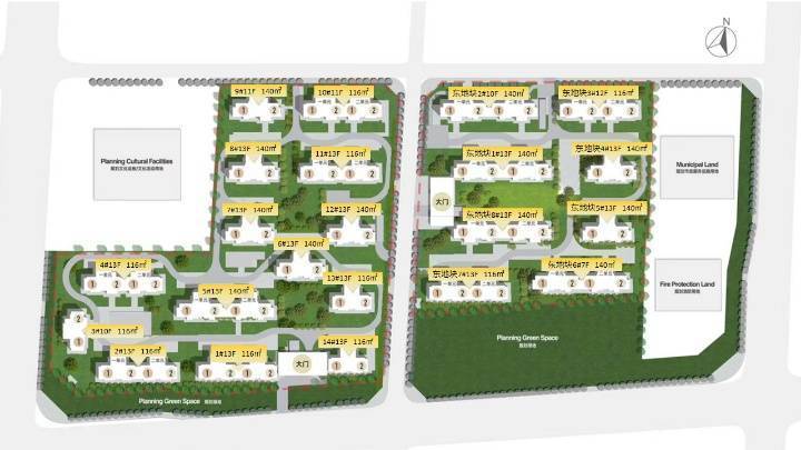 【产品篇】※2T2户纯板式,77亩低密越级改善社区其占地约77亩,由两宗分别约31亩、46亩地块组成,容积率仅约2.0,纯住宅项目,其中31亩地块内仅规划有14栋7-13F洋房和小高层。