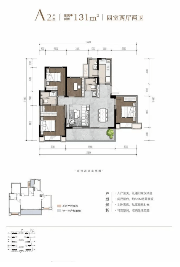 此系列户型是项目的改善之选,面向对居住品质有更高要求的家庭。四房的设计提供了更丰富的功能空间,如独立书房、儿童活动区或多功能房等。131-169㎡ 的宽阔面积段,确保了每个房间的舒适尺度,带来真正的改善型居住体验。