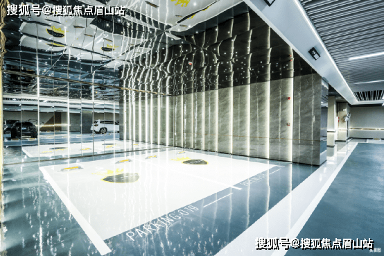 地下车库,采用亮色现代设计风,主要以墙面砖和岩板为装饰,配以明快灯带线条,地下和室外一样明亮,让人过目难忘。