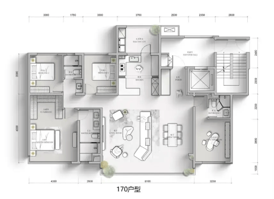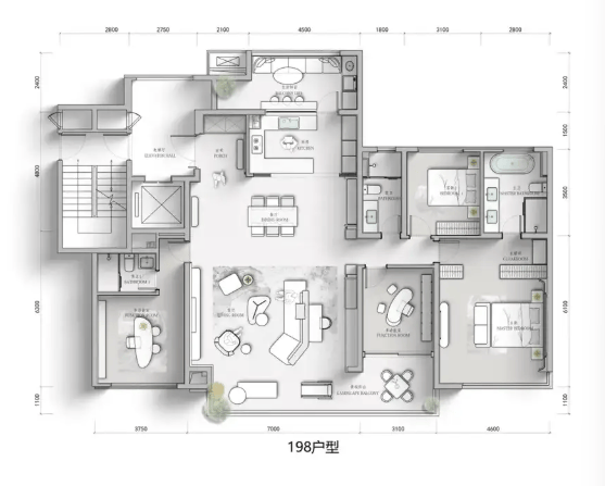 此系列为项目的核心改善产品,覆盖三至四房。143㎡为经典三居,170-198㎡则升级为舒适四居,空间设计强调功能完备与尺度感,尤其适合多代同堂的大家庭,是入驻青羊主城核心区的品质之选。