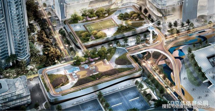 3D立体体育公园|涵盖室外立体公园、空中跑道、1:1原版复刻跳伞塔、准赛级游泳馆、综合大小球馆、超现代社区综合体等