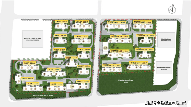 ※2T2户纯板式,77亩低密越级改善社区其占地约77亩,由两宗分别约31亩、46亩地块组成,容积率仅约2.0,纯住宅项目,其中31亩地块内仅规划有14栋7-13F洋房和小高层。
