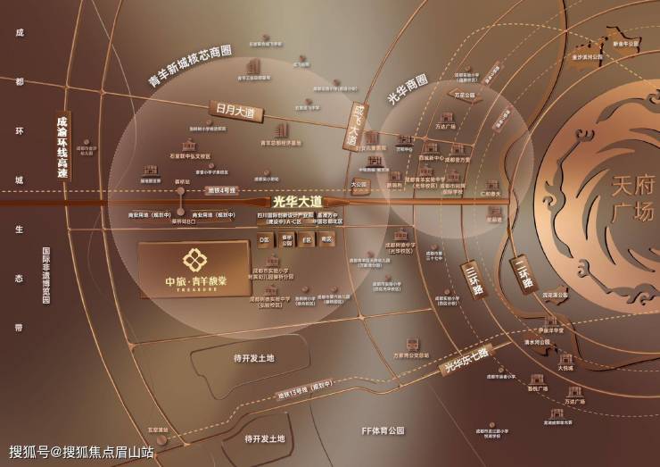 🚊交通——三横五纵三地铁,立体交通路网·三横:光华大道、日月大道、东坡路西延线·五纵:中环路、西三环、培风路、成飞大道、成渝环线·三地铁:地铁4号线、地铁9号线、地铁13号线(建设中)*本项目距4号线蔡桥站直线距离仅约300米*本项目距13号线瓦窑滩站直线距离约700米