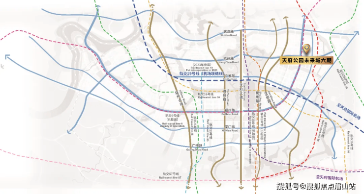 十余条主干道与8条轨交构筑城市骨架,其中6号线杭州路站于天投·天府公园未来城六期地块设置两个出入站口,于此出发,2站(6号线换乘19号线)直达城市候机楼(规划),轻松通达世界;约3450亩天府公园在侧,秦皇湖畔慢跑、草坪露营、风筝……充满活力的公园生活触手可及(以上数据、信息均来源于天府新区官方公众号)。