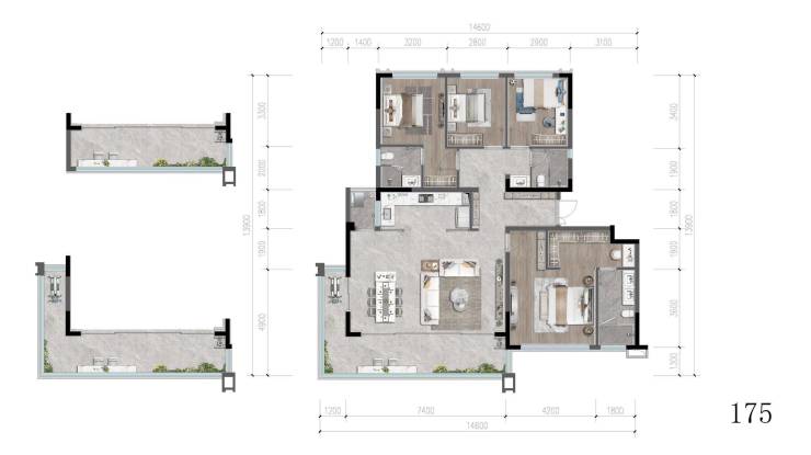 梯户比:107㎡/128㎡:2T4户;143㎡:2T2户 ;175㎡:1T2户