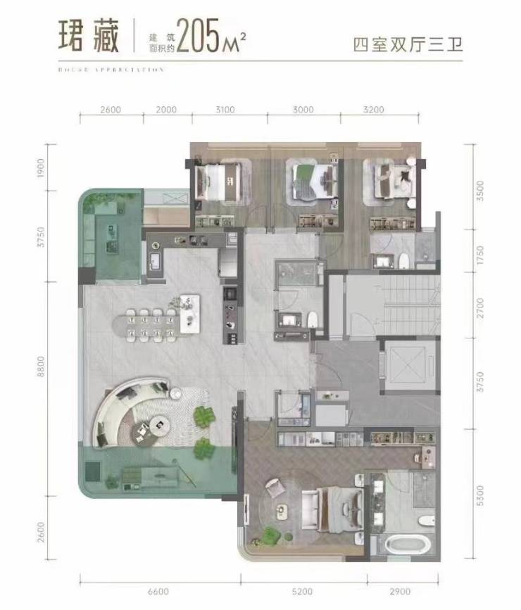 价格体系:143㎡ 3-3.3万/㎡;173㎡ 3.3-3.7万/㎡;205㎡ 3.7-4万/㎡