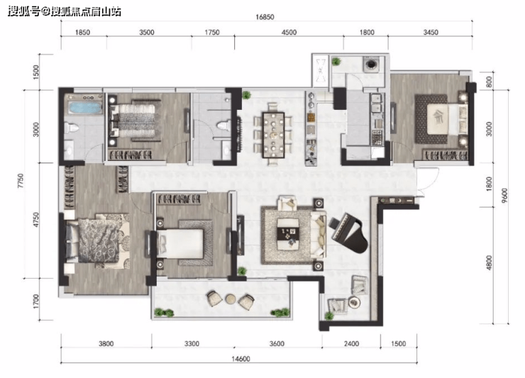 建面约156㎡「套四双卫」