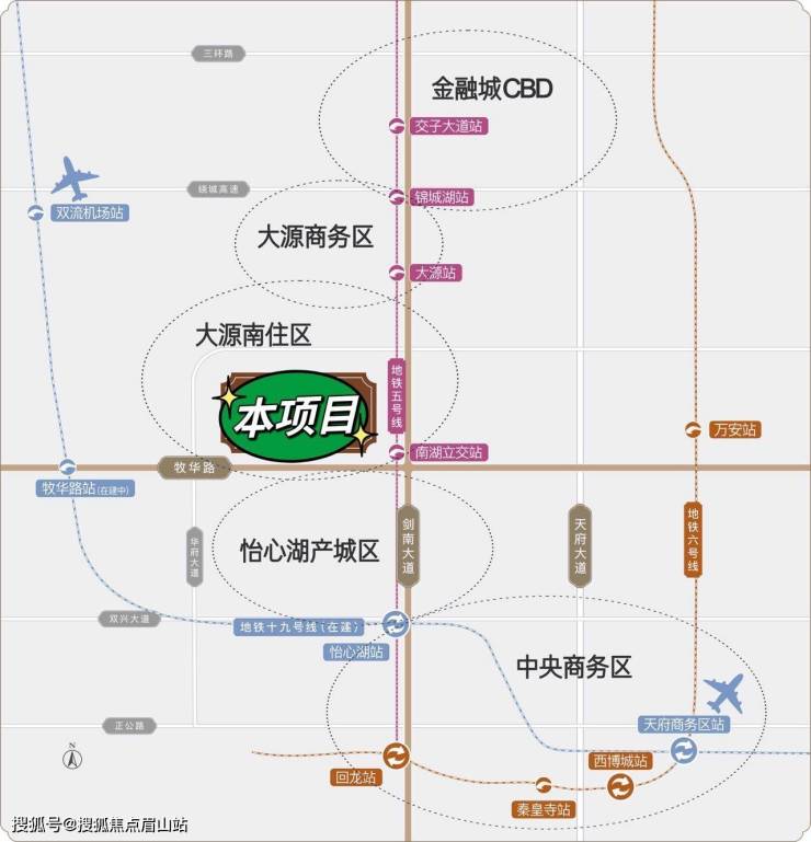【交通配套】🚇——四横三纵双地铁 出行畅达四方——南北:剑南大道、华府大道、天府大道东西:三环路、四环路(绕城高速)、华府大道、五环路(牧华路)项目紧邻剑南大道/牧华路主干道5 号线南湖立交站,500米左右,可到达向北 5 站即可到达大源板块,7 个站即可到达金融城;向南 1 个站即可到达怡心湖换乘 19 号线,4 个站到达双流机场,8 个站到达天府国际机场;向南 3 个站即可在回龙站换乘 6 号线