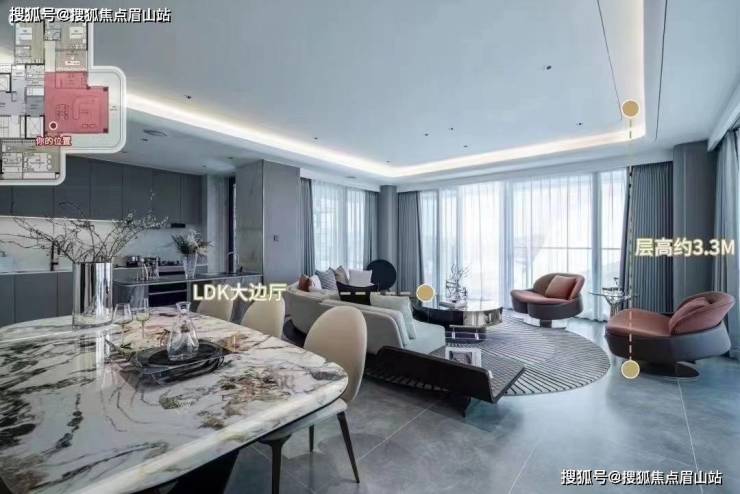 2.“极致层高”演绎“奢与阔”。众所周知,市面上叠墅普遍地下室层高5.8m,地面层层高3m。