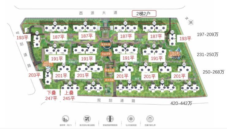 项目基础信息:👉项目属性:郫都区首个人才房项目(70年产权住宅)👉占地面积:107亩👉容积率:1.5👉绿地率:规划30%(实际50%左右)👉面积:洋房187-201㎡;上叠别墅245㎡;下叠别墅247㎡👉层数:洋房7-15层;上叠别墅3层;下叠别墅2层👉公摊:14-18%👉车位配比:1:2.3👉总户数:541户👉物业费:洋房2.6元/㎡👉交房时间:预计2022年3月
