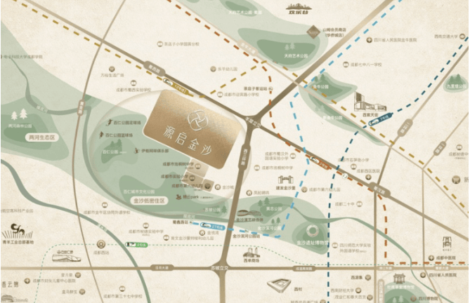项目所在的金沙板块是成都资源成熟度最高的区域之一,生态、商业、交通资源均达到城市顶级水平。