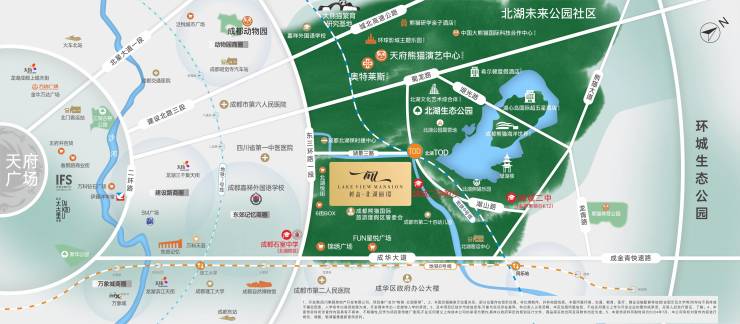 近邻总面积约2.5平方公里北湖站TOD(规划中),轨道交通8、9、32号线换乘于此,8号线同乐站(在建)、9号北湖TOD站(规划中)以及蜀龙路、成华大道、熊猫大道、东三环等立体交通畅达全域。