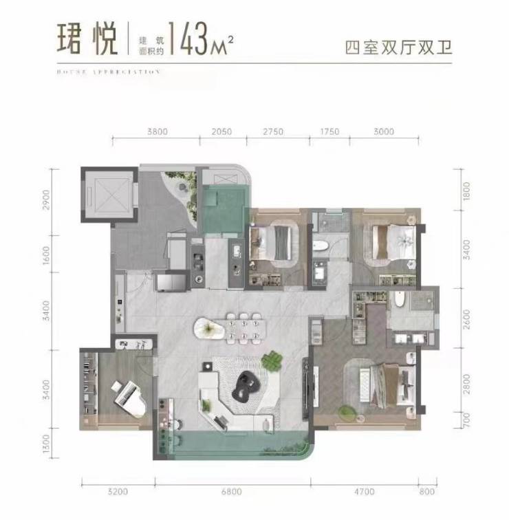 价格体系:143㎡ 3-3.3万/㎡;173㎡ 3.3-3.7万/㎡;205㎡ 3.7-4万/㎡